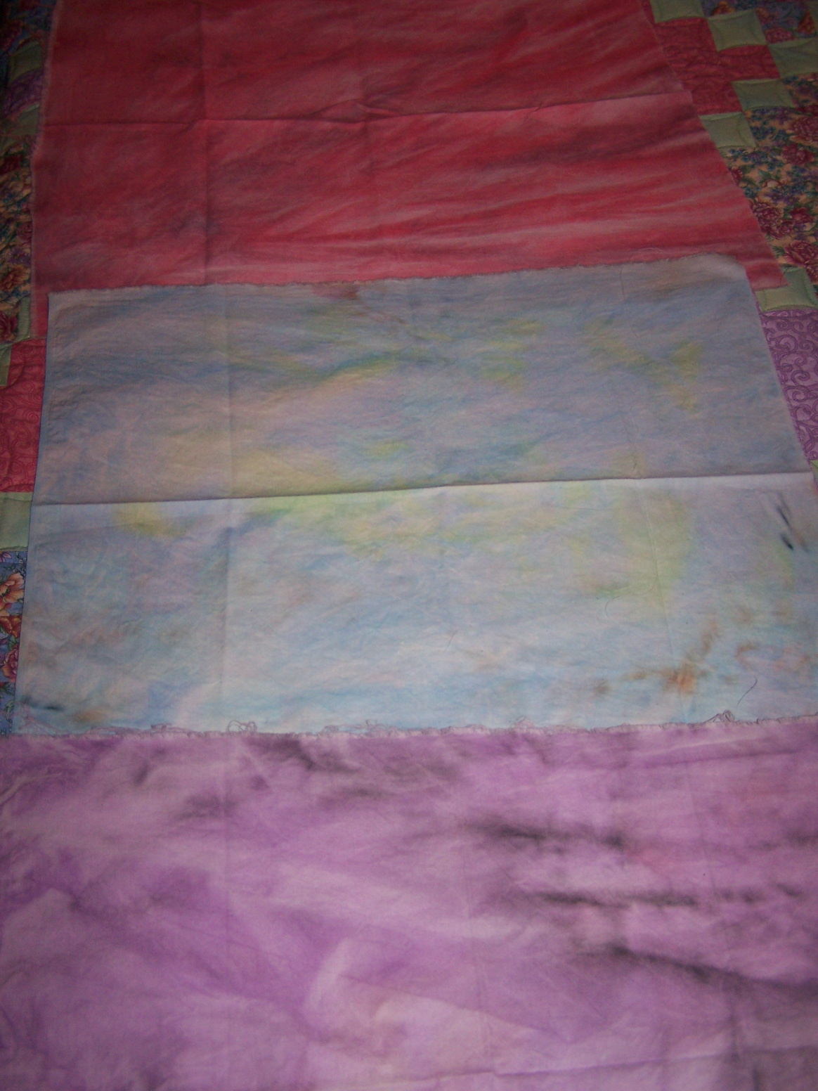 I got a wonderful treat in today’s mail! Gayle sent me some of her gorgeous hand dyed fabric as my prize for winning her contest on her blog. It is so yummy! I love it! Thank you, Gayle! I may have to take up this fabric dyeing…as if I have time for another project….
