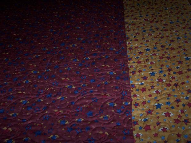 I’ve been busy as a bee, trying to finish up some projects. I should have a good stashbuster report this week. I had to do a last minute fleece blanket for a customer. Got that loaded & quilted Tuesday night, trimmed & fringed it yesterday. I’m trying to finish my courthouse steps as a Christmas surprise for my DH, but I think that might be pushing it. But I’m trying!