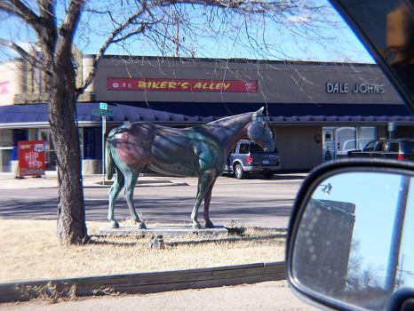 There are horse statues, like this one, scattered all over town. But they are all painted differently. This one is by Route 66. I took a pic of Route 66 for you, but it didn’t come out good. Sorry.