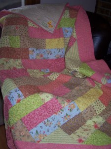 I finished the quilting on the Chinese coins baby quilt. I worked on it during lunch Monday, and after I got home. I’ll post pics of it when I get it all finished. It came out really cute, though.