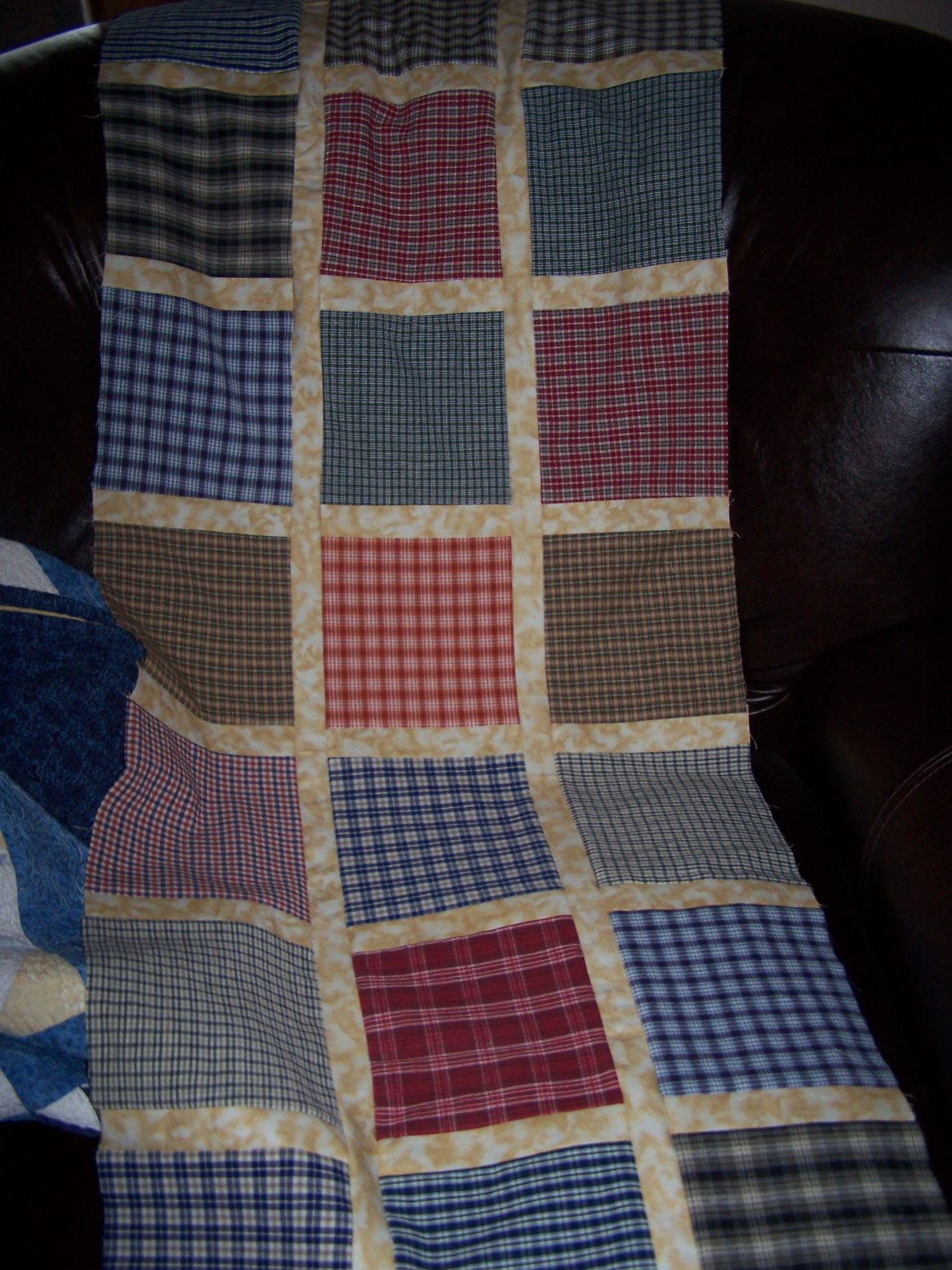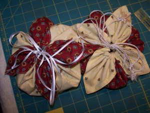 I have gotten two more rows of the first memory quilt finished. And I found this great tutorial , on Debby Maddy’s blog, while blog surfing. Thank you for sharing it, Debby. I had fun giving it a try, and I think this is a great gift project. I am sure I will be digging through my fabric stash to make a few more of these.