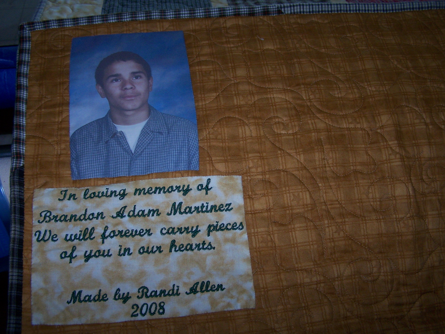 Completion of the memorial quilt for the Martinez family. They loved it!