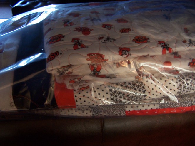 I longarm quilted three OSU lap quilts, and one OSU baby quilt for a customer.