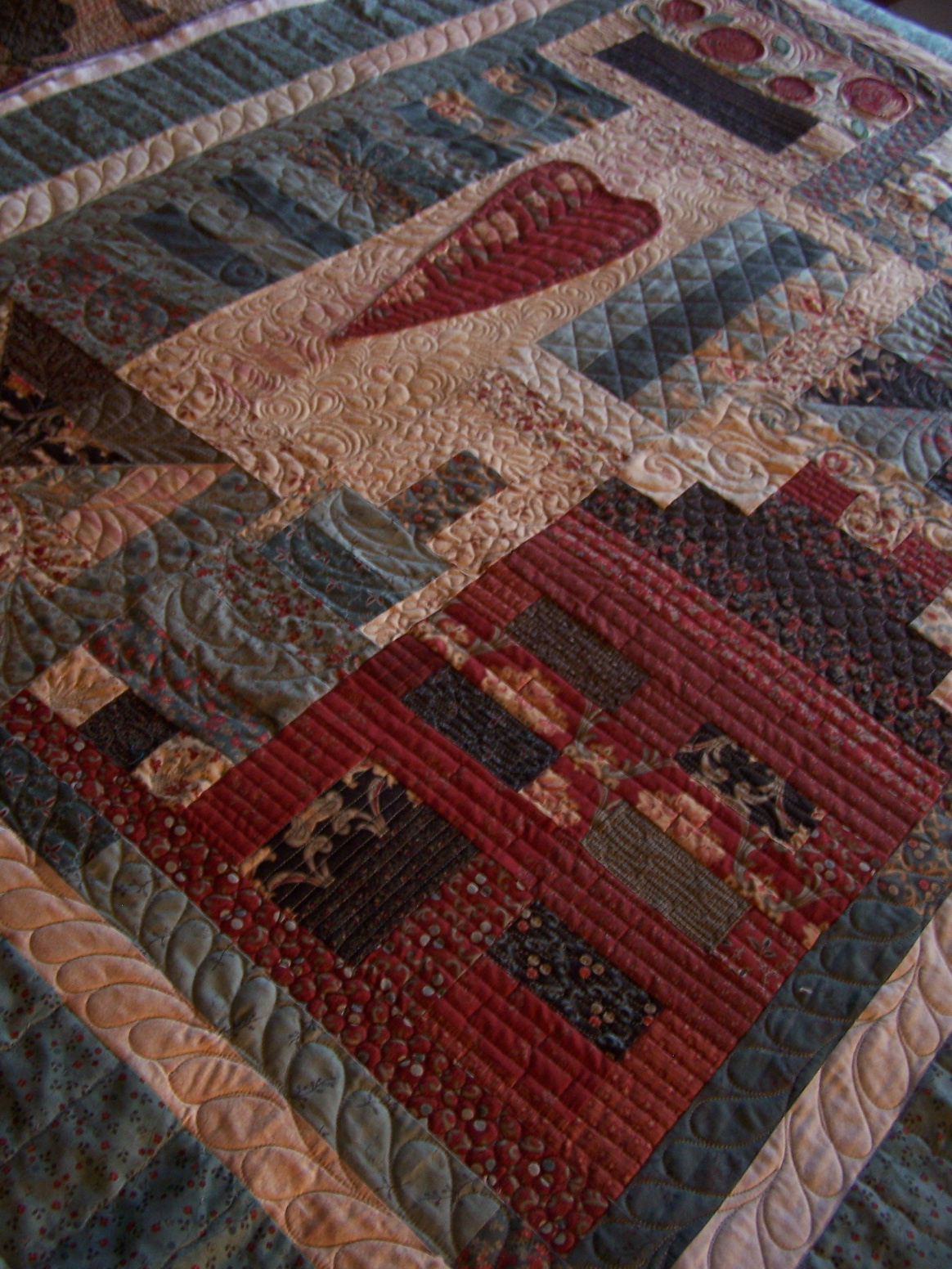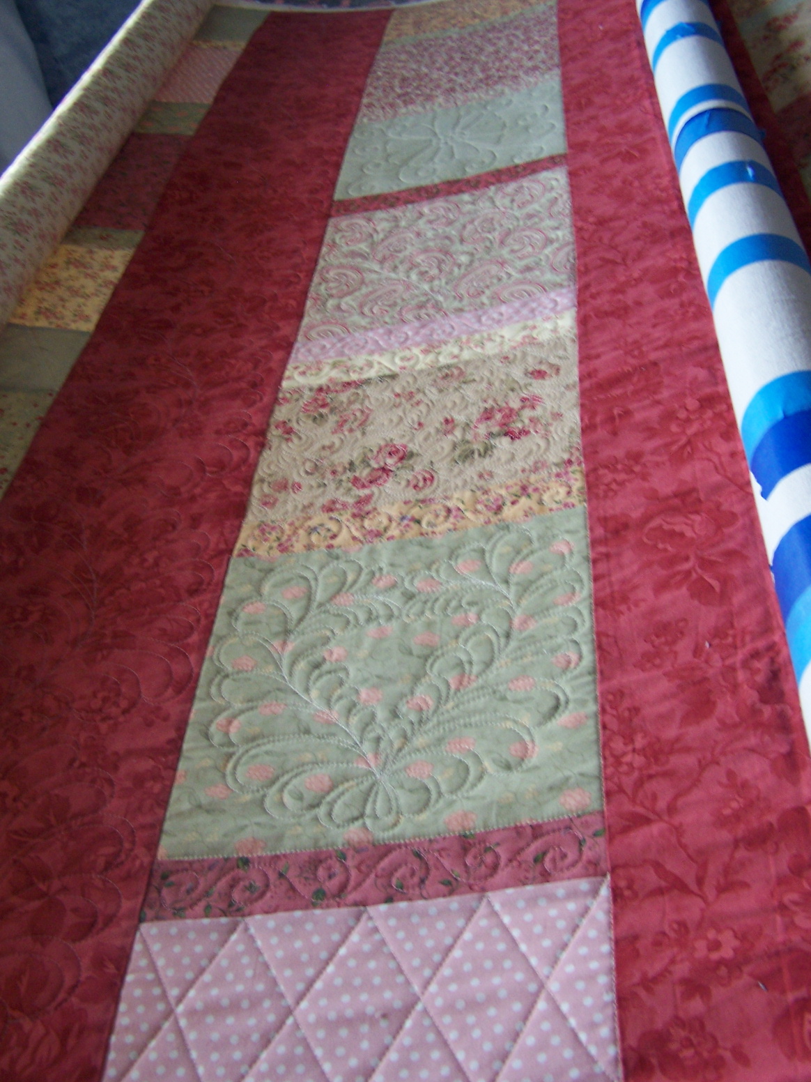 5.25 yards finishing up the commissioned memorial t-shirt top, preparing the backing, and the binding.