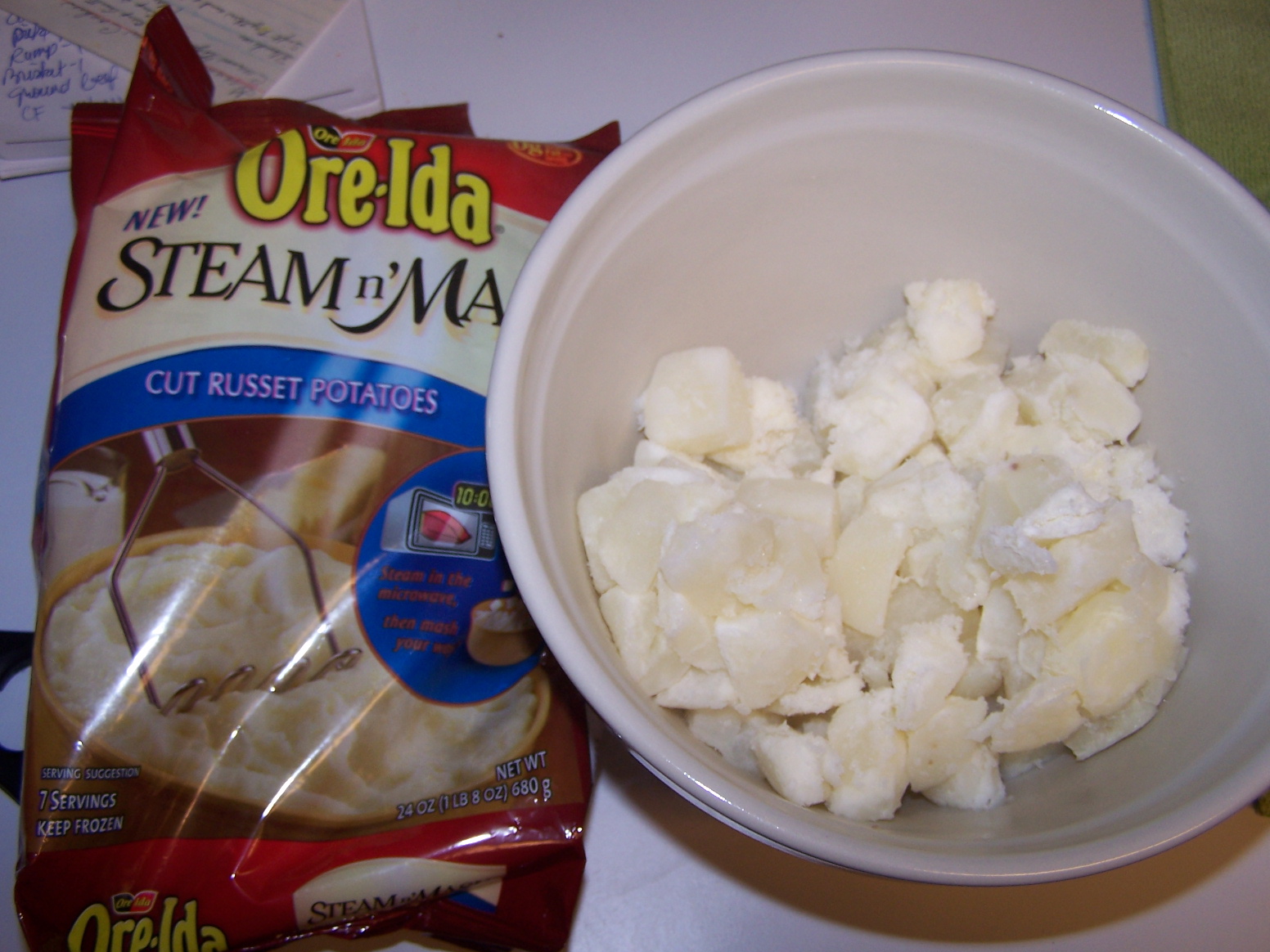 I was so excited when I saw the commercial for them on TV. This is a great time saver for me, and they are really good! Now my family gets mashed potatoes on weekdays again. When I get off of work at 5:00, and come home to start dinner, peeling and chopping up potatoes is not high on my list of things I want to do. These guys get two thumbs up from me. They also come in sweet ‘taters, and galic herb and some cheesy ones. I like the sweet and the regular russets the best.