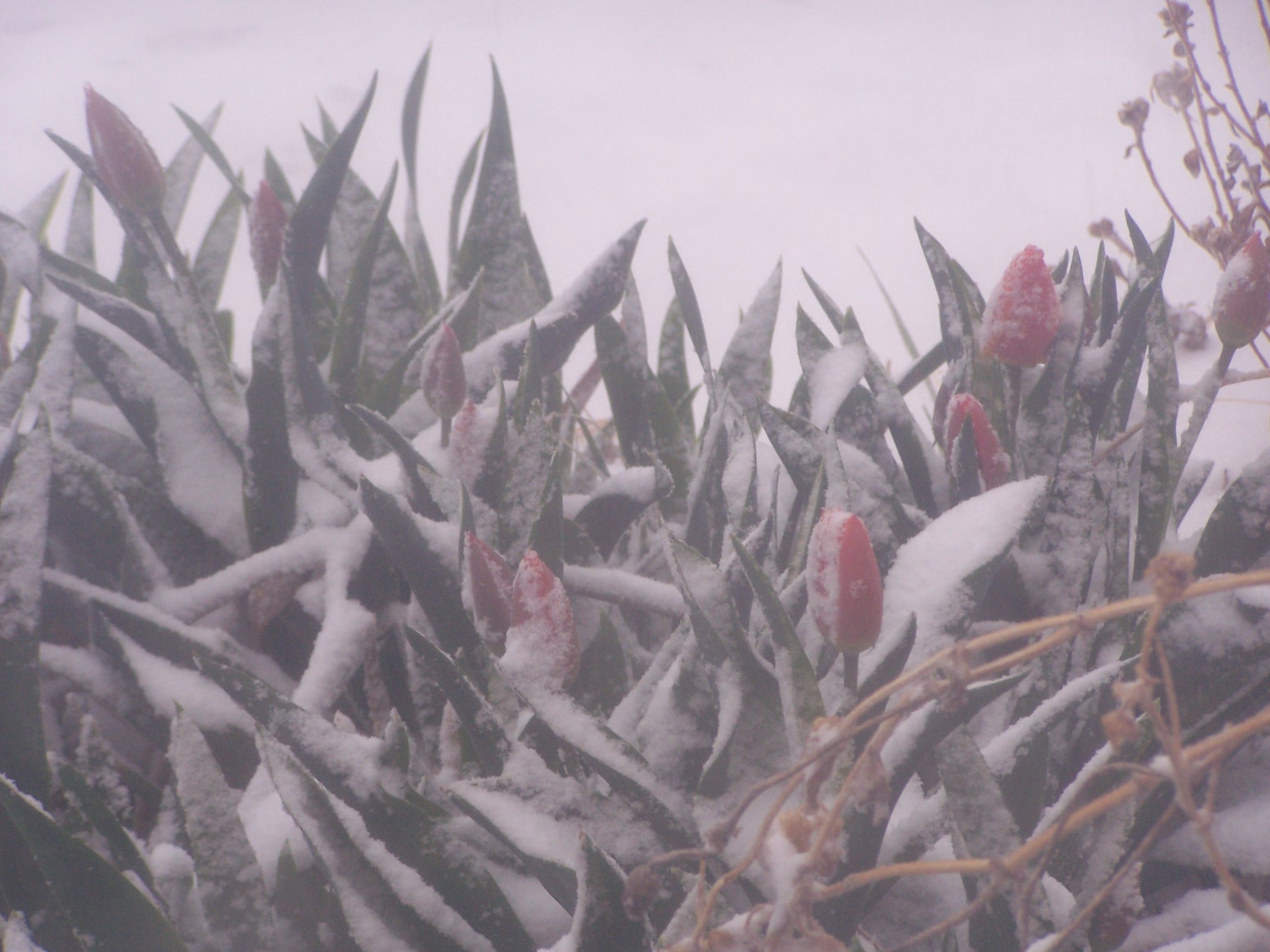 My poor tulips. I did not go into the office today. They are announcing on the radio that the courthouse will have limited availability today, and the sheriff is saying please stay home if you can.