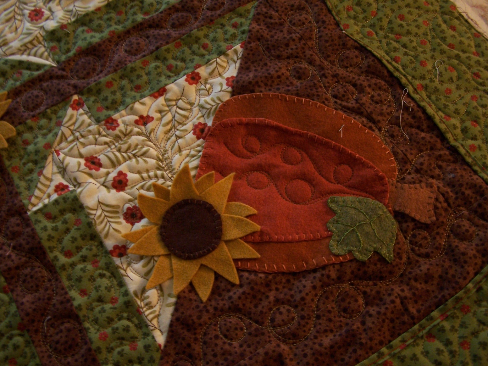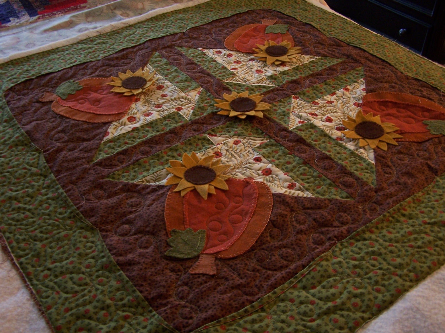 And I quilted this cute pumpkin table topper for my friend, Betty. If you are reading, I hope you like it, Betty Lou! I will bring it to you Tuesday, unless you want to swing by and get it sooner.