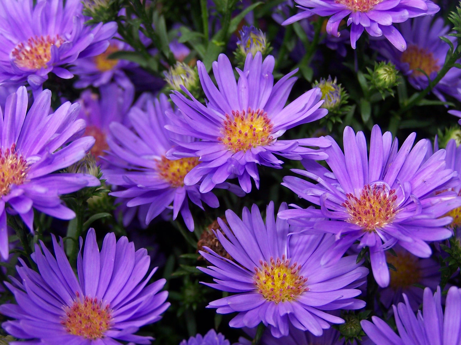 And these are my pretty new flowers that my hubby brought home Friday, to plant in my flower bed. Purple asters…I love them!
