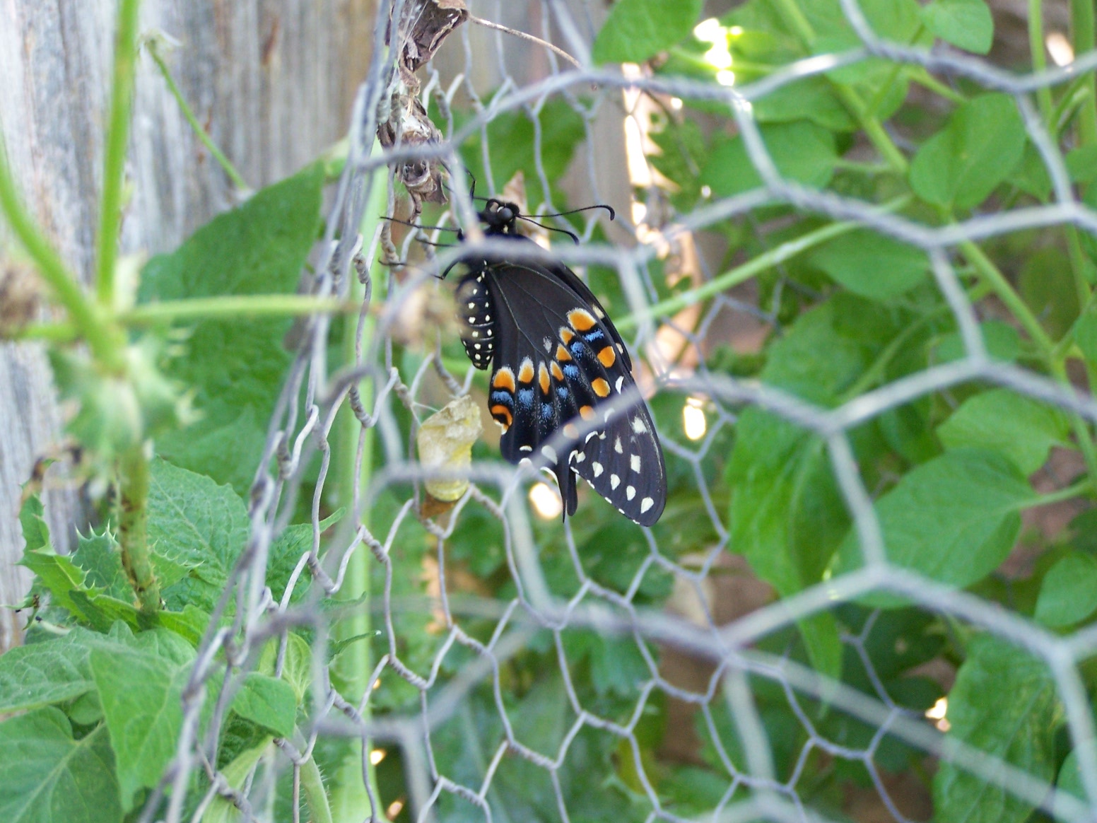 Remember the caterpillar post from a couple of weeks ago? I’ve been watching the chrysalis, checking on it everyday. I went to work this morning, came home at lunch and found this: