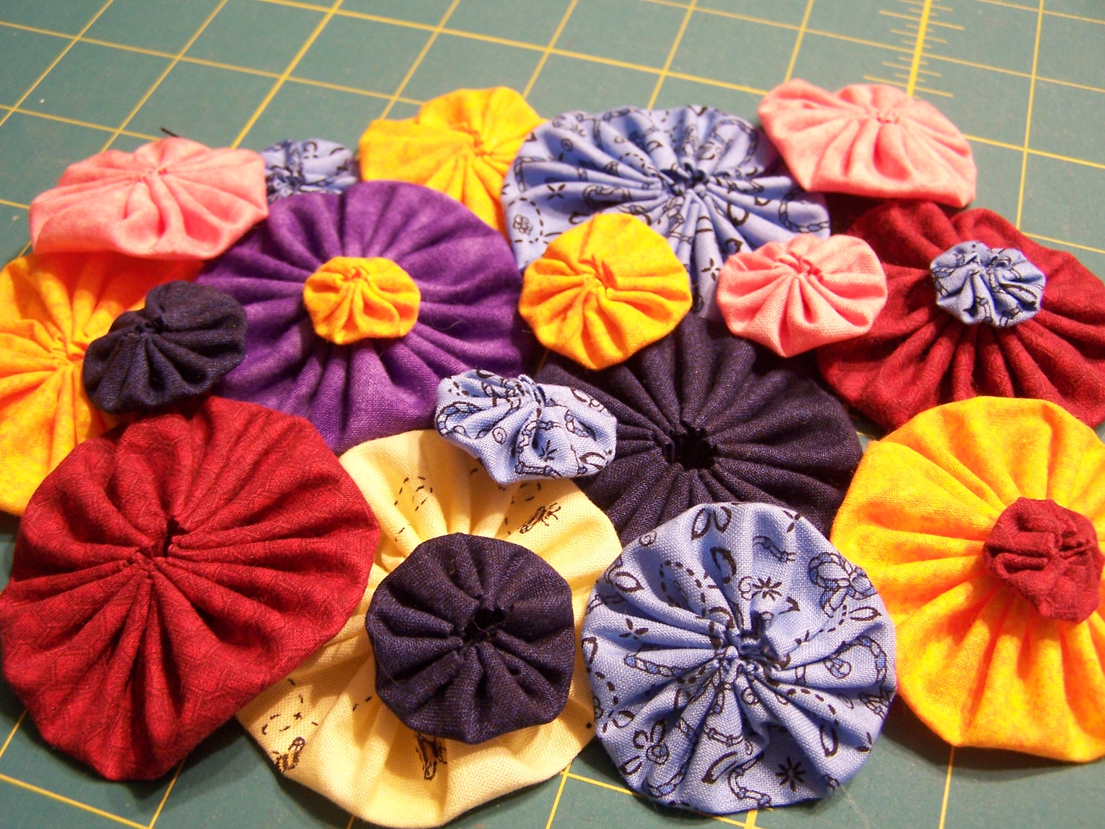 I am loving yo-yo making! I told Mom that I have found a project she can do, when she starts feeling better. 🙂 I will show her how and let her try one, and if she likes it, I will get her a set of yo-yo makers of her very own, and supply her with some of my scrap fabrics. I think it would be something that could help her pass the time while she regains her strength. Right now, she is so weak she can barely raise herself up out of bed. Her fever went up to 102 degrees last night, prompting blood draws, and a chest xray, which revealed some pneumonia in the right side. It is always so hard for me to leave her. If I were not working, I think I would just live at the hospital with her. I am thankful for some wonderful extended family that are pitching in, so that we can all take turns sitting and resting, and give me some peace of mind while I’m at work. I am sooooo ready for her to turn the corner and start having better days again. I hate seeing her so frail and weak, and suffering with pain. But, I believe that she is going to get past this, and my Mom will be coming back, and someday we will have a project with yo-yos made by mother and daughter.