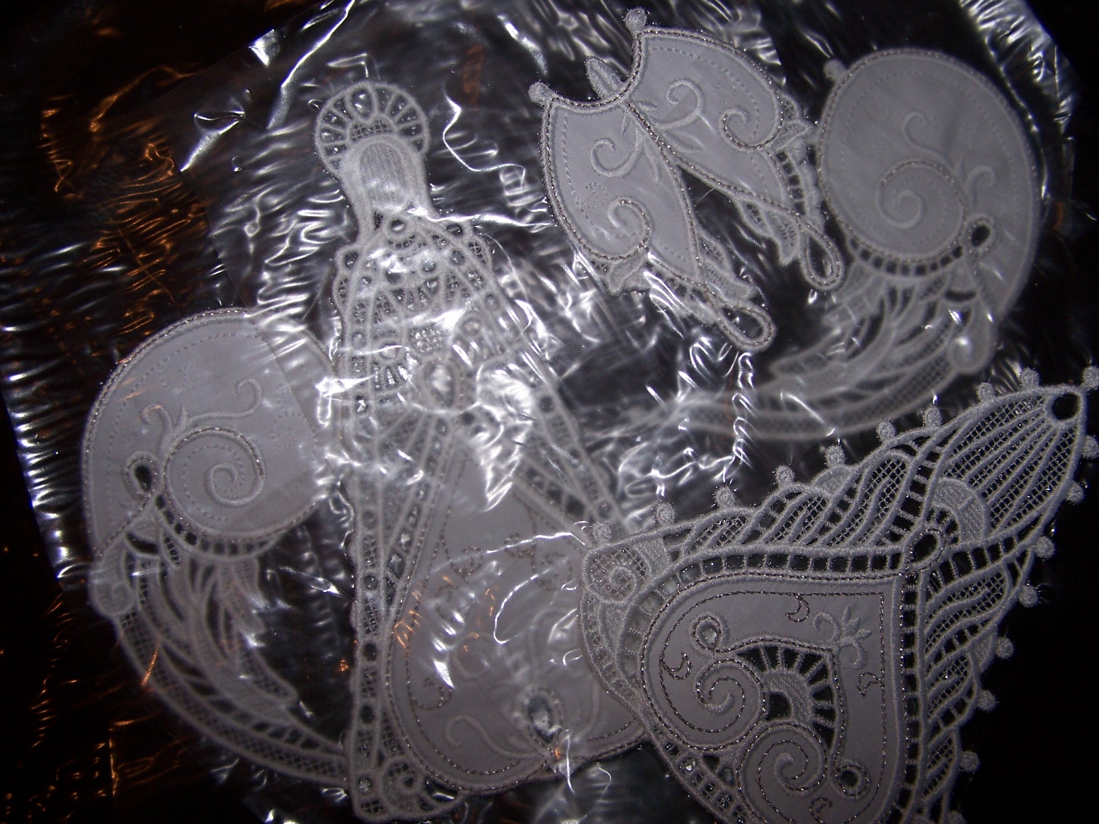 While I was working on those, I had my embroidery machine running, making these angel parts: