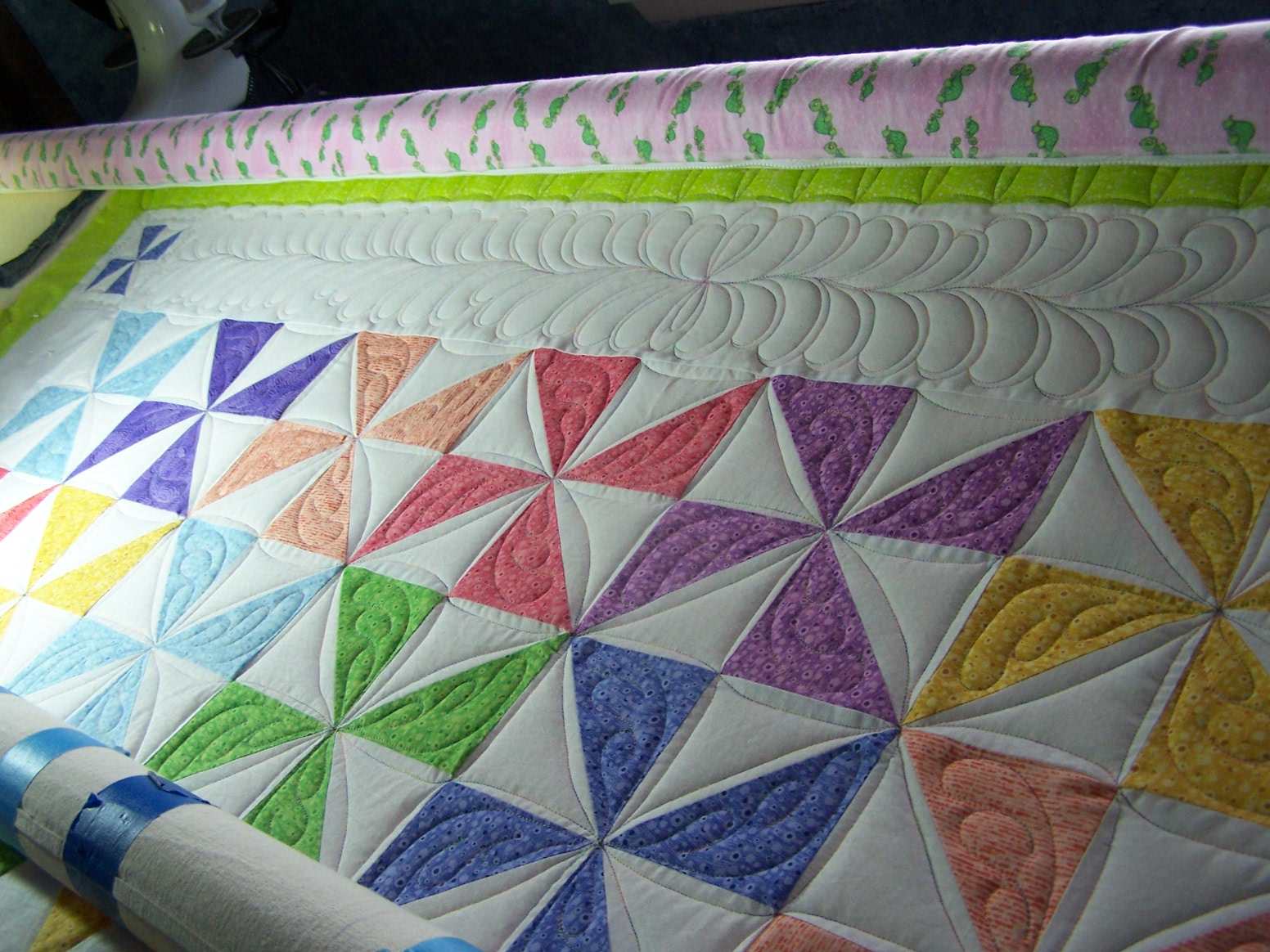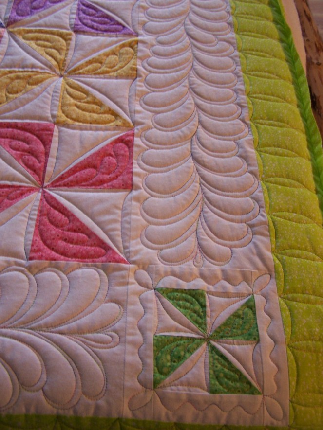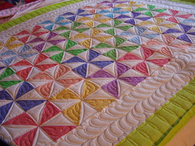 I finished Judy’s pinwheel quilt in time for her to gift it to her granddaughter for Christmas.  This was such a cute top, and I really got to let loose and just enjoy the quilting of it.  Thank you, Judy!