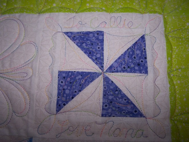 There isn’t anything spectacular about the quilting on this one, but I sure had fun quilting it! I love fun and whimsical quilting! So my thing!