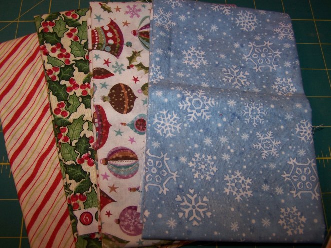 Quilt guild style! Tuesday night is our annual Christmas party.  It’s a fun time.  We eat (really well), we do a fun Christmas fat quarter exchange, a “dirty Santa” ornament exchange, and play Quilto for various “prizes” contributed by the members.  There is always lots of laughter.  If you aren’t familiar with “dirty Santa”, it’s a gift exchange where you actually get to steal from each other, until a gift has been stolen a predetermined number of times, and then it is “retired” from the stealing, and the current holder gets to keep it.