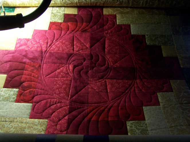 I’m going to be headed off to a work conference in Galveston for a few days, so I won’t get to work on it anymore for about a week. 😦 I’m going to miss it while I’m gone! Gosh, it feels good to be enjoying my quilting again! I just wish I could yell to Greg, “hey honey! Come see this!” And then, I would hear him say “Cool!!”