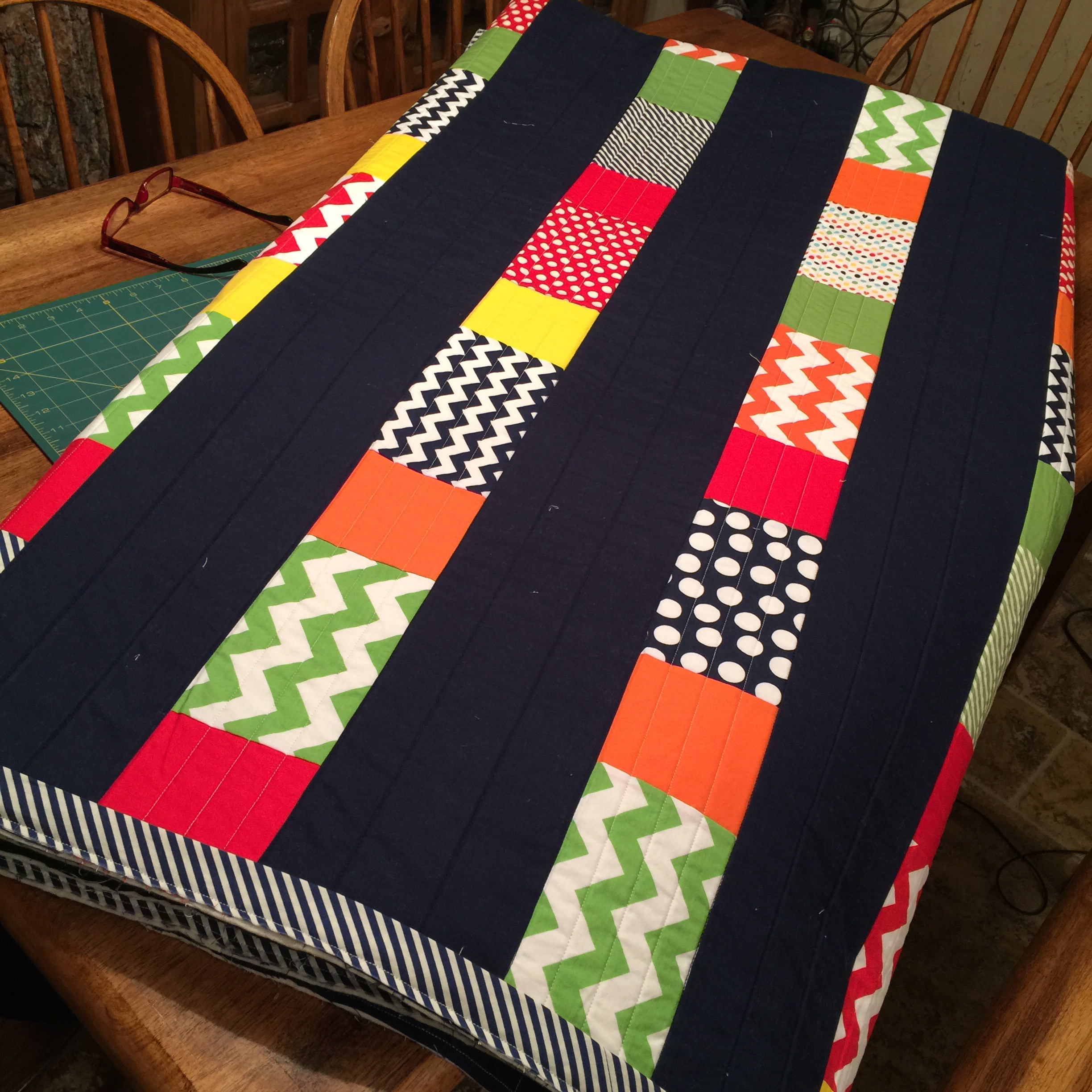 In between all this and my day job, too, I did make a couple more blocks for baby Chase’s quilt. I will stitch down the edges of the center “windows” after all the blocks are made. I think I will top stitch them by machine in matching thread rather than hand stitch.