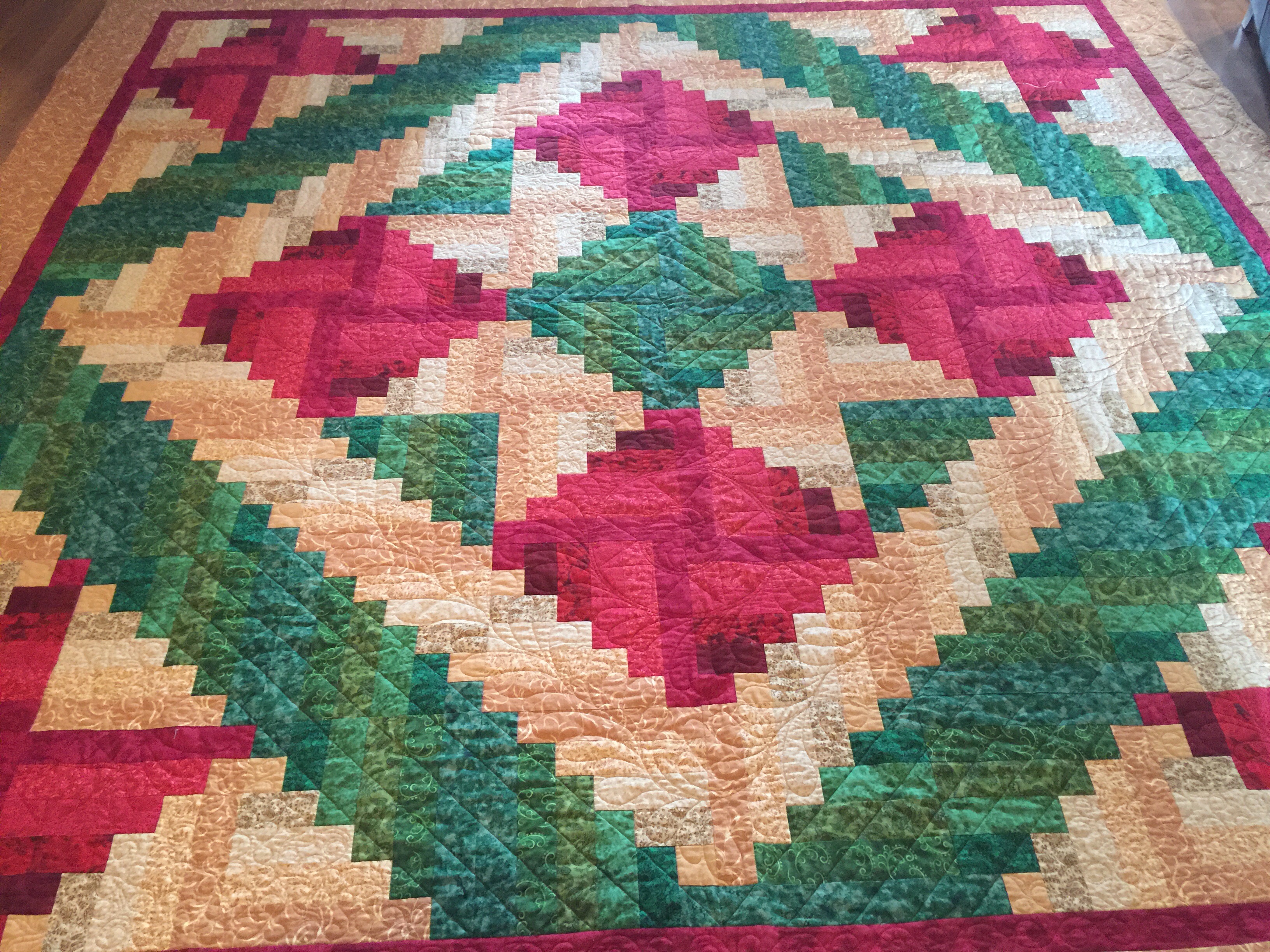 On August 20th, the day after my last post, all normal routine came to an abrupt halt when it became clear that it was time to call in hospice care for my father. Some of you will remember that I have mentioned his struggle with Alzheimer’s here before. His battle is over. He passed peacefully just before 4 a.m. on Monday morning, August 22, 2016, laying beneath this quilt that I made him several years ago. It was one of his most treasured possessions. He was so proud of it. It seems surreal to have it back here in my home, where I presented it to him what does not feel like so very long ago. Soon, when I can collect my thoughts on this, and have ample time to devote to sitting down and writing it, there will be much longer, very personal post about our experience with this disease, and my dad’s death. For now, I leave you with a snippet of Daddy’s quilt. Goodnight.