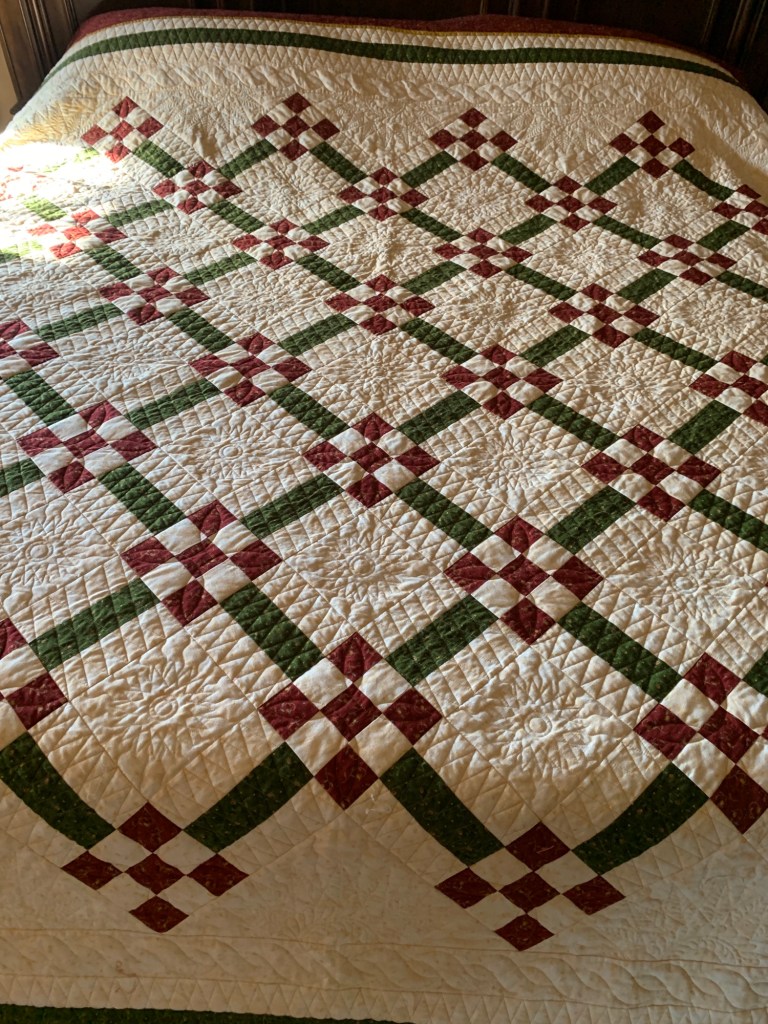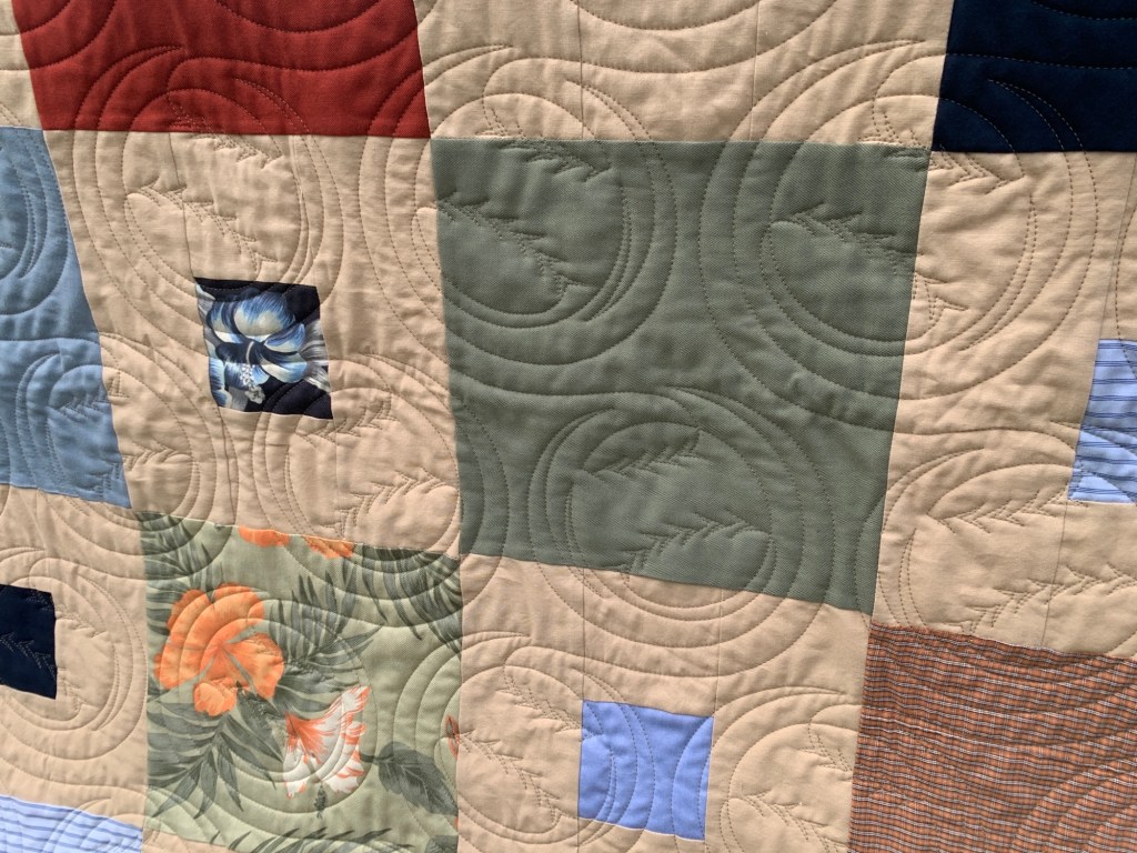 After everything calmed down, I finished the hand stitched binding on my friend’s commissioned quilt.