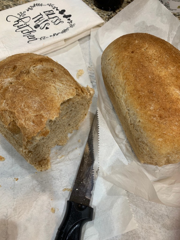 I have never had great success making bread. Except for quick breads, like pumpkin, banana, etc. I tried making a whole wheat sourdough yesterday from some starter gifted to me by a fellow quilt guild member, and it’s the best bread turnout I’ve ever had. Not that I have tried very much. I was always so discouraged after less than delicious results that I quickly gave up that endeavor. This round was encouraging, though!