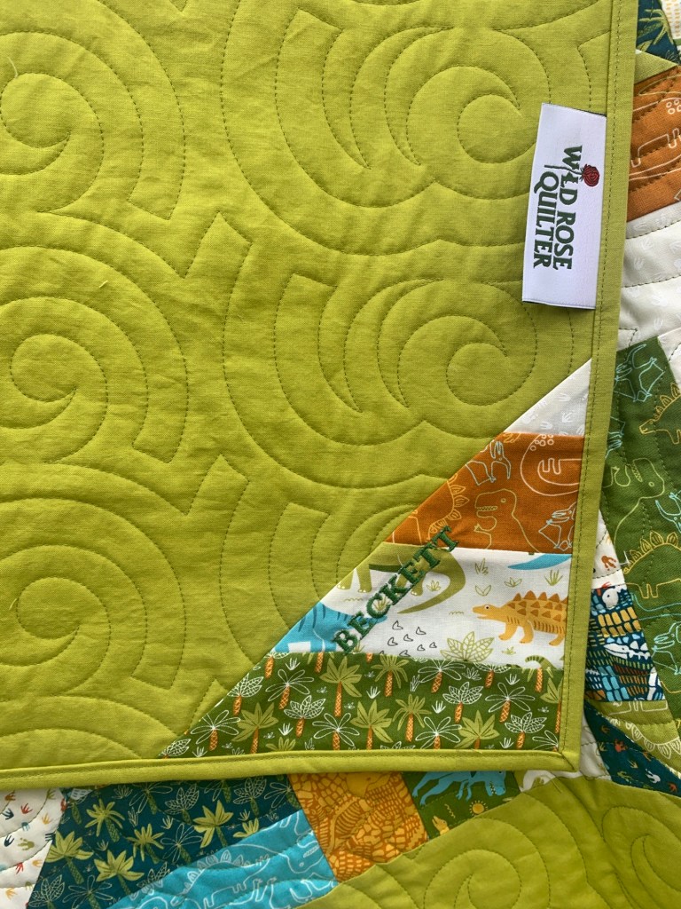 Whew! Just unloaded a huge client quilt from the longarm. 106” X 113” of snuggly flannel for a lucky little boy! Quilted with edge to edge digital design, Tire Tracks from Urban Elementz. This quilted up so nicely! I know my client will be pleased. She was so hard on herself about the quality of her work. This quilt is great! I’m telling her she needs to ease up on herself. Nothing is perfect, and it doesn’t have to be perfect to be wonderful, anyway! It was actually quite square and I had zero issues with it. Even being ginormous, lol. It was a joy to work on!
