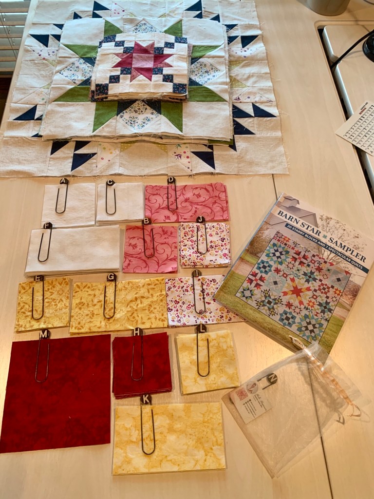 I got the all the pieces for the next block in my Barn Star Sampler cut out. These will make two identical 24” blocks. And, I got to try out this nifty notion I ordered from Belle Bruner of Seams So Me. I follow her on Instagram and she posted these cool clips she designed to organize your quilt pieces. I love them!