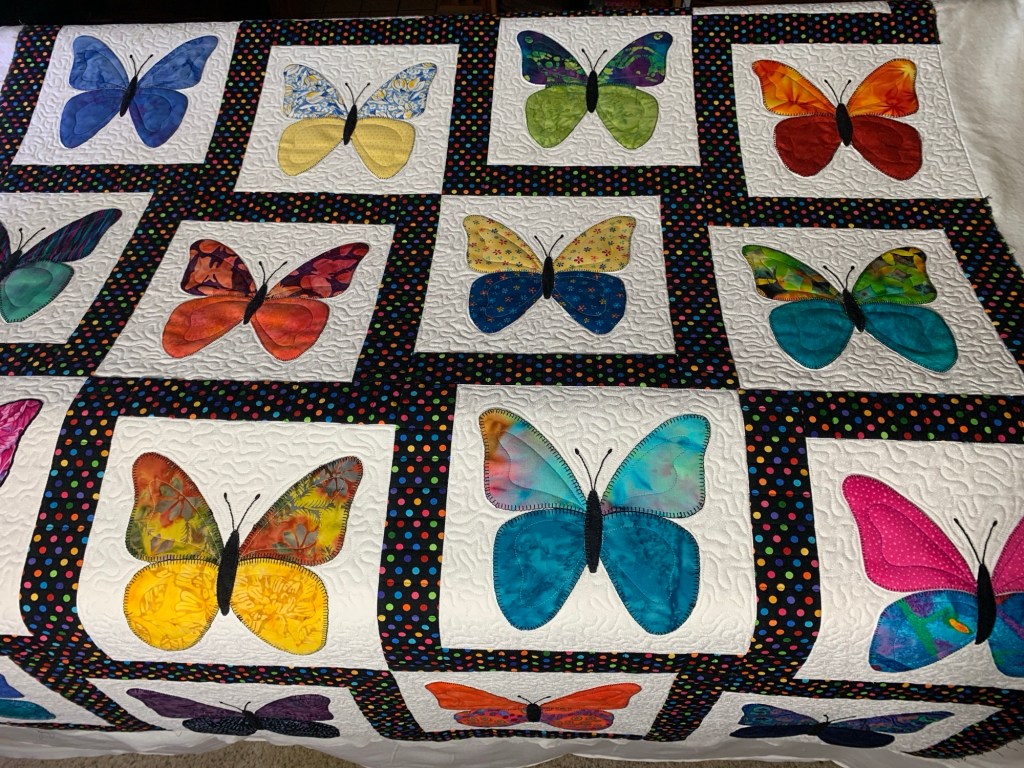Sometimes simple custom quilting is the perfect touch to make a quilt shine. My client requested custom quilting, but wanted it simple, with just background stipple around the butterflies. I think it turned out very nicely! What do you think? Are you a fan of the simple stipple, no absolutely not? Personally, I think it has its place, for sure.