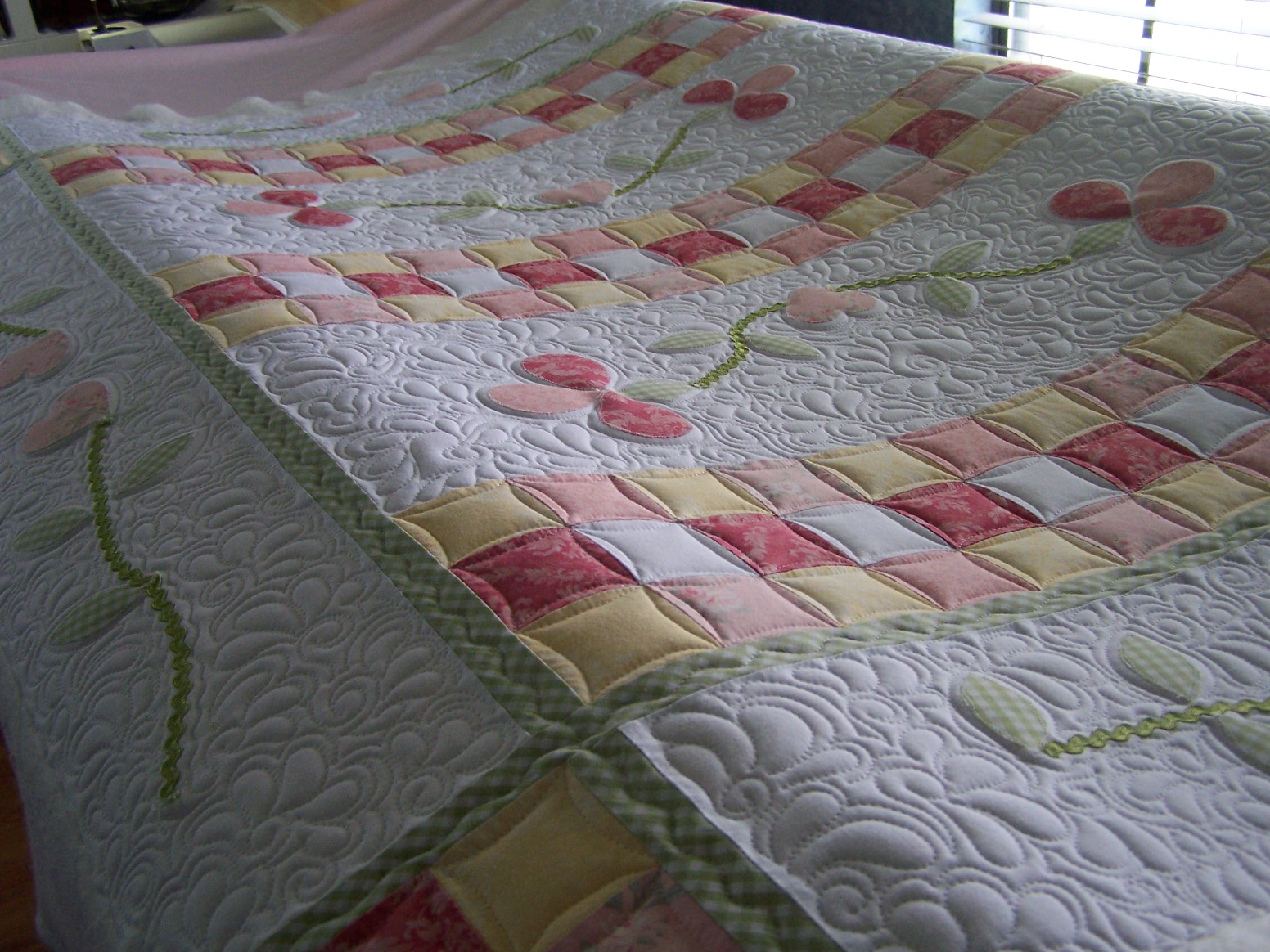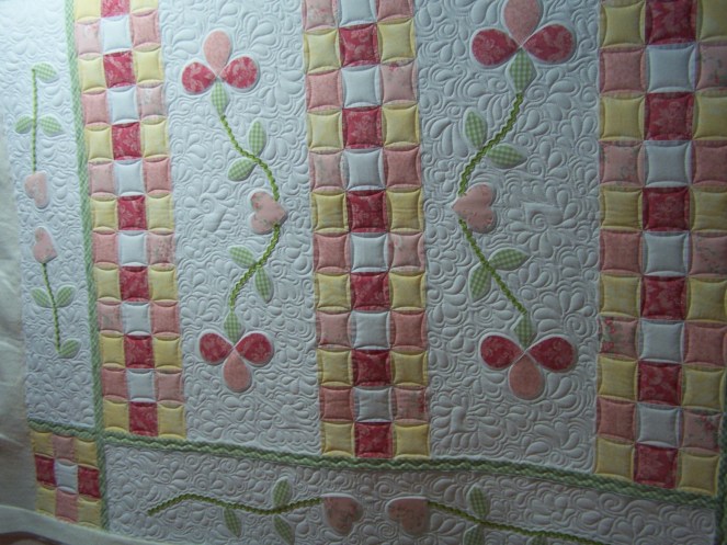 I also got the memorial t-shirt quilt quilted. Here is a snippet of the freehand quilting on the back. I will post a pic of the whole quilt after I get it completely finished.