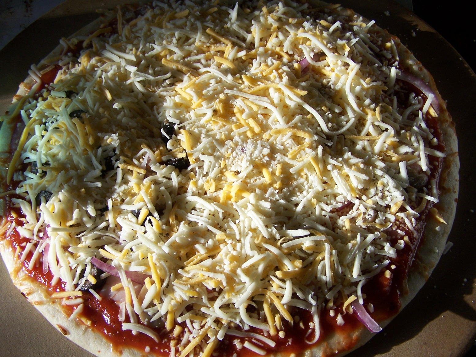 The dinner I am cooking tonight might not be conducive to weight loss. Here it is before going in the oven. Yum. I like some homemade pizza.