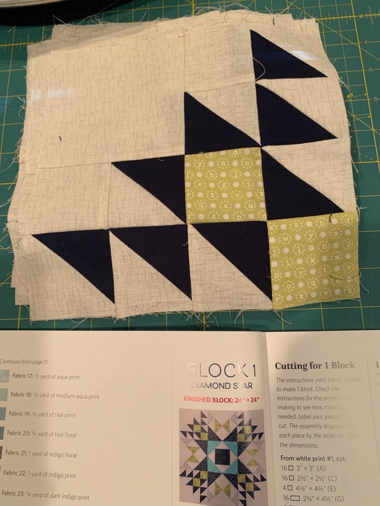 I’m no stranger to the seam ripper, but that was a much bigger mistake than normal. I’m ready to get these two giant blocks behind me. I was supposed to have finished my blocks in February, and then assembled the quilt top last month, according to the QAL schedule. Obviously, I didn’t make it on schedule. This block is month 9, so after it I have blocks to do for months 10 & 11, then the mini filler blocks and top assembly for month 12. I haven’t decided if I’m going to custom quilt it, or do a pretty edge to edge on it. I’m kind of leaning to doing an all over edge to edge. We shall see when I get there, I guess!