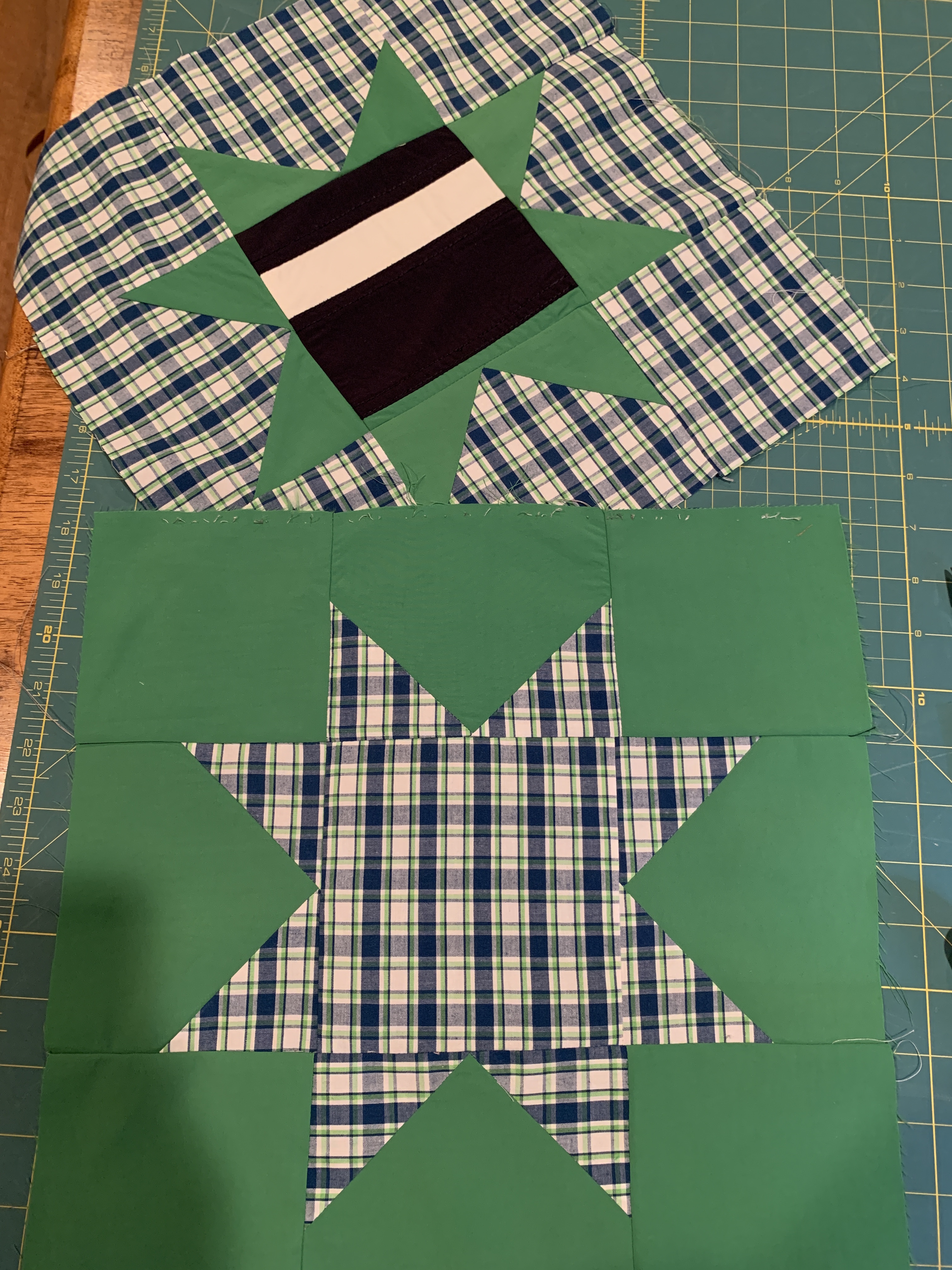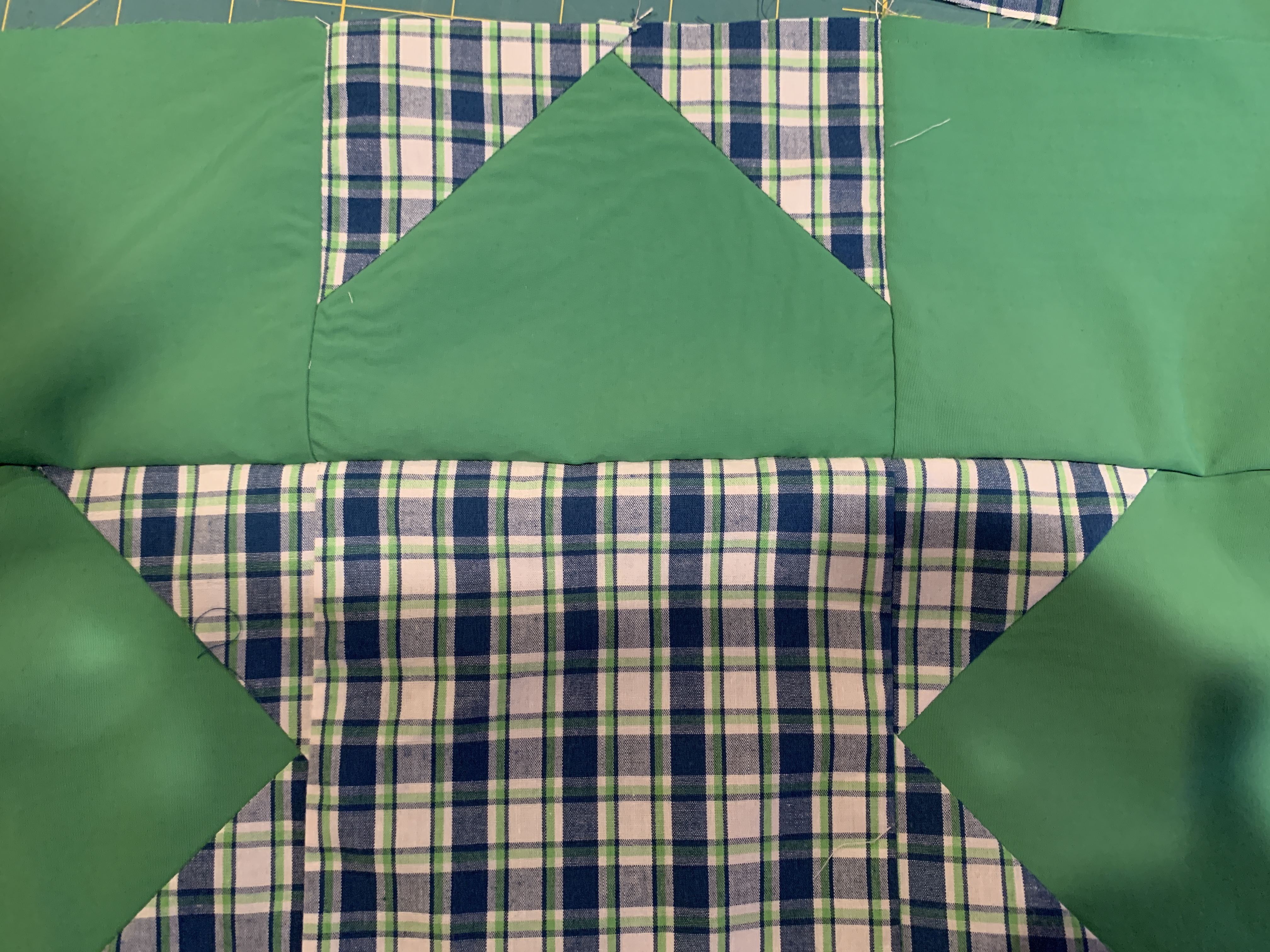 The first project I worked on today was the machine sewn binding on the quilt I’m making for my great-nephew. Then I pulled out a WIP I started last February. I joined Shelley Cavanna’s Barn Star Sampler quilt along, and should have been assembling my quilt top this month, but I fell behind in December. Today, I cut out all the pieces for my next block. Just as I finished cutting the pieces, we had an unexpected thunderstorm that brought hail, and a tornado that caused some damage on the south side of town. Not fun considering my town was hit by a bad tornado last June, killing three people, injuring many more and leaving many homeless. Businesses were also lost. Anyway, we are fine. And, now it’s supposed to snow tomorrow!